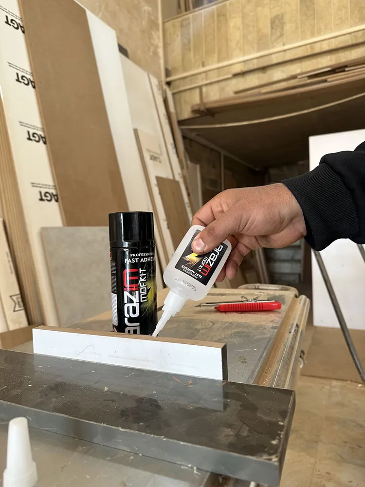 - تعمیرات خانگی و دکوری: چسب قطره ای آرازیم برای اتصالات چوبی، ساخت مبلمان، تعمیرات دکوری و چسباندن قطعات کوچک در خانه بهراحتی استفاده میشود.