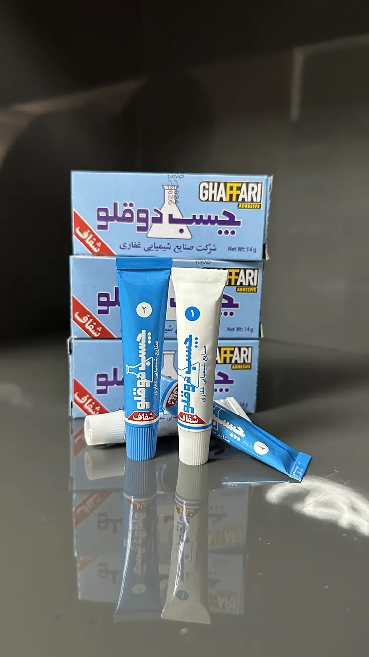 در چسب دوقلو شفاف غفاری، این دو ماده در دو تیوب جداگانه قرار دارند.